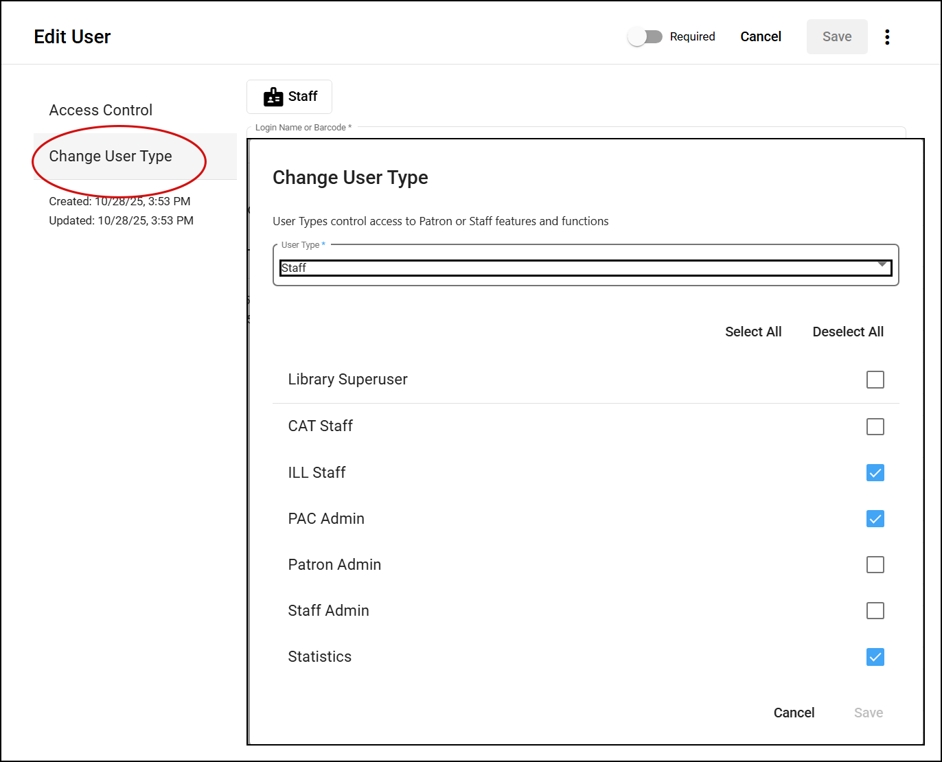 Recommended: As the Status Option: Undo Shipped is rarely used we recommend this permission is only activated on Illume Admin (Library Superuser) accounts and not necessarily for all staff accounts. Using the Lender > Undo Shipped or Borrower > Cancel Shipped Request status changes may have workflow implications for the currently assigned partner library. We often recommend consulting with the other library before using this status option.